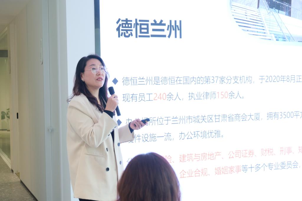 在正式宣讲环节,首先,王奇主任带来主题分享《德恒西北区域的我们》,对德恒西北区域进行总体介绍。他指出德恒律师事务所正朝着“一体化、品牌化”的目标努力,不仅限于服务某一个地区的客户,而是西北六所协同发展,致力于打造西北地区第一品牌。王奇主任的精彩分享使得同学们对德恒律所的战略布局有了更加深入的了解。随后,德恒西北分支机构宣讲人分别介绍了所在地区的发展重点。德恒西安办公室合伙人陈愚律师播放了校招宣传片,短片轻松愉快,展现了西安分所蓬勃向上的工作氛围。陈律师表示,作为德恒西北第一所,德恒西安分所放眼西部,旨在为陕西乃至中国西部的企业事业单位及个人提供一流的、专业的法律服务。德恒乌鲁木齐办公室人力资源高美瑜介绍了乌鲁木齐独特的地理位置,其地处亚欧大陆的中心,是连接中亚、南亚、东欧的重要枢纽城市。基于此,德恒乌鲁木齐分所充分发挥地理优势,在跨境业务、商贸往来中有着丰富的经验,荣获“优秀党支部”“优秀半岛(中国)单位”等荣誉称号。德恒银川办公室管委会副主任、高级合伙人李晓红律师指出德恒律所立足“塞上江南”银川,这一西北地区的重要经济文化城市,银川分所深耕本地,为区域经济发展提供了全方位的法律服务。德恒西咸办公室高级合伙人刘智萍律师表示西咸分所依托“一带一路”这一新时代中国推进全球治理的伟大实践,立足于古丝绸之路起点,以“为商事客户提供最可信赖的法律服务,推动国家法治进步”为使命,开创新的事业版图。德恒兰州办公室运营总监魏万霞秉承“德行天下,恒信自然”的服务理念,为甘肃省委宣传部、甘肃省财政厅等党政机关及大型国企、民企集团、上市公司提供法律服务,重视青年律师培养,打造“青出于蓝胜于蓝”的“青蓝计划”,为青年律师发展提供广阔平台。西北各分所宣讲结束后,法学院学子掌声不断,对不同分所的职业发展均表现出浓厚的兴趣。