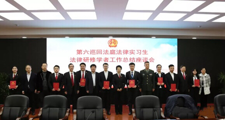 会上,六巡副厅长骆电宣读了第六巡回法庭关于表彰21名优秀实习生的决定。我校博士生夏伯琛、硕士生张一、王恬、徐博、贺薇五名同学被评为第四批优秀法律实习生。出席座谈会的领导为受到表彰的法律实习生颁发了优秀实习生证书。
