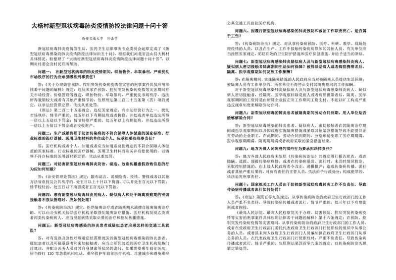 强化责任担当,充当先锋模范。在做好自身防疫工作的同时,我院各研究生支部的党员还热心服务社区,扎根一线,从量体温、做记录、搞采购、送温暖等小事做起,利用个人知识技能优势,主动协助家乡基层组织开展防控工作。硕7156班非全日制研究生赵楠粉同学身处湖北省宜都市疫情重灾区,坚决服从单位指挥,长期坚守在抗击疫情一线,在有确诊病例的封闭小区门口值班,为阻断疫情进一步蔓延贡献力量。硕9158党支部孙嘉学同学加入所在地防控志愿者团队,凭借自身专业优势,结合当地工作实际,整理了“新型冠状病毒肺炎疫情防控法律问题十问十答”,传播疫情防控相关法律知识,回答群众关切问题,引导村民遵纪守法,倡导群众依法防疫。硕9159党支部马燕飞同学充分运用所学知识,在电商平台和市场监督管理部门投诉哄抬物价、制假售假的不法商家“美护士旗舰店”,维护消费者合法权益和医药防护用品市场秩序,目前该案已经由浙江省东阳市市监局移交公安机关进行刑事侦查。硕9160党支部孙阳同学协助所在地党支部,将基层干部挨家挨户收集的本地区返甘、来甘人员信息及时录入省卫生健康委员会“健康甘肃”系统,为卫健部门精准掌握人员流动,及时排查疑似病例提供了数据支撑。