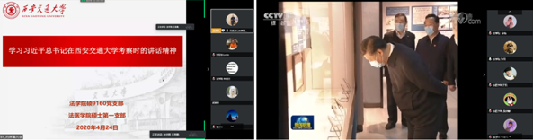 活动伊始,法医硕士党支部书记刘军林通过播放视频的形式,带领大家重温了习近平总书记在西安交通大学考察调研时的重要讲话,两院学子深受感染,纷纷连麦发言,交流心得体会。