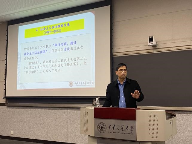 12月2日晚,法学院党总支书记、西安交通大学立法与党内法规研究中心主任王保民教授为发展对象进行了“深入学习习近平法治思想”专题讲座。通过对习近平法治思想的历史逻辑、理论逻辑与实践逻辑的分析、对十一个坚持要求的深刻阐述,梳理了习近平总书记的部分重要论述,激励各位发展对象积极深入学习、实践。